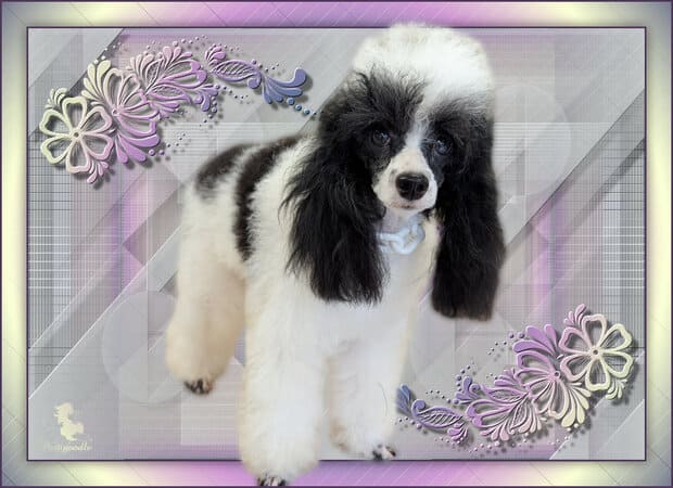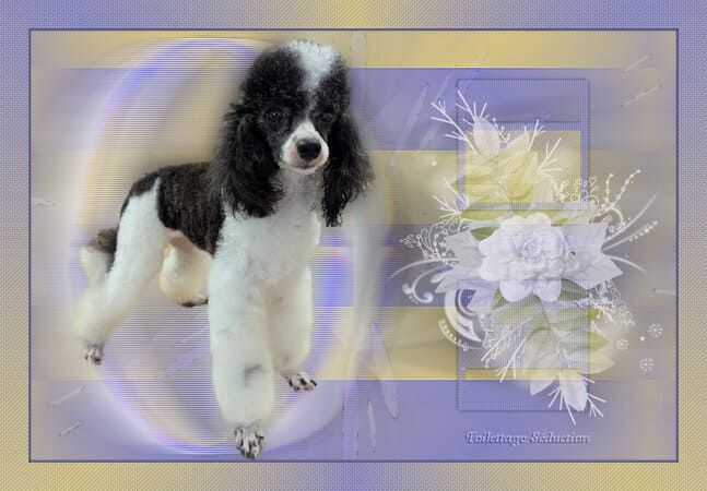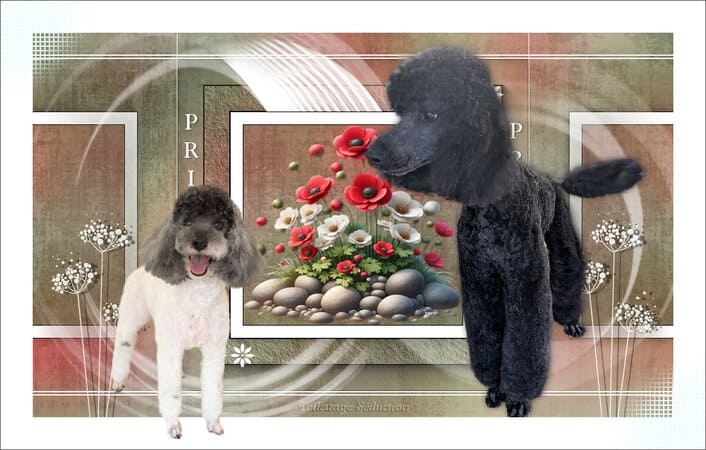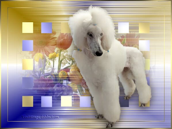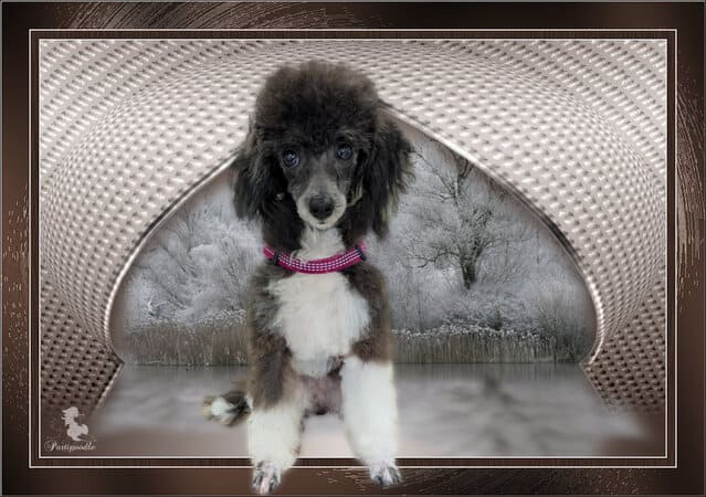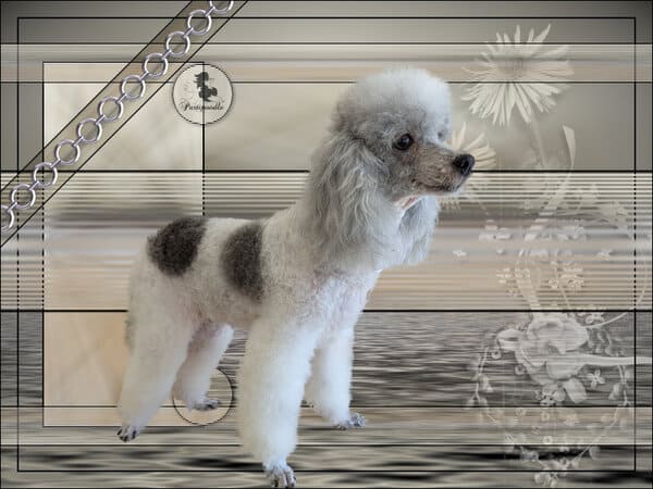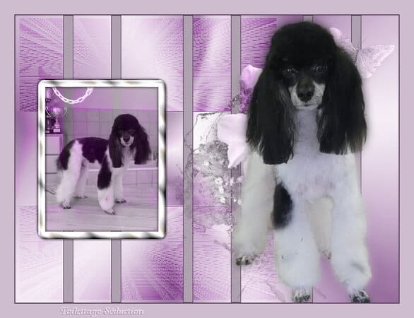 Savez-vous qu’il existe une variété de caniche dont la robe est colorée différemment : les caniches particolores ? Ils sont reconnus par la FCI depuis 2024 sous le nom de caniche autres couleurs après que le standard soit déposé par la France sous le nom de Chien Pluricolore à Poil Frisé . Vous pouvez en découvrir sur ces photos. La première championne de la race est Hermione, qui m’appartient. J’ai le plaisir en caniches et CPPF d’avoir plusieurs vice-champions et champion de France : de superbes caniches que j’ai mis au monde, toilettés, présentés en ring par mes propres soins.