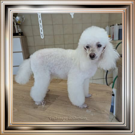 Les caniches sont ma race de prédilection, je les aime dans toutes les tailles et toutes les couleurs, en fourrure cordée ou bouclée. Je possède moi même plusieurs caniches que j’affectionne en coupe puppy ou moderne. Ces toilettes, certe, demandent plus d’entretien qu’une tonte, mais quel plaisir de plonger ses mains dans leurs somptueuses fourrures. Vous pouvez voir mes caniches sur le site Partipoodle et sur le site de Cybèle des Can’Tzu, vous y découvrirez les caniches cordés : une variété de caniche dont la texture de fourrure est vraiment surprenante et spectaculaire. Vous les rencontrerez si vous le souhaitez en venant au salon de toilettage.