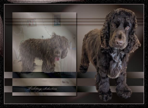 * L’épilation des cockers n’est pas la même que celle des terriers : elle sert à rendre le dos du toutou bien plat et à le débarrasser des poils morts qui le grattent. Une épilation bien faite ne fait pas mal. Je l’effectue à la craie, au trimmer, au coat king ou au peigne élastiqué suivant la texture de la fourrure. Le but est de retirer le poil mort, épais et laineux, et de laisser le poil plus épais, lisse et soyeux. Si votre chien nécessite une épilation importante, il ne sera pas lavé pour éviter tout risque de réactions cutanées. Si l’épilation est légère comme pour tout cocker régulièrement entretenu, le bain sera fait.